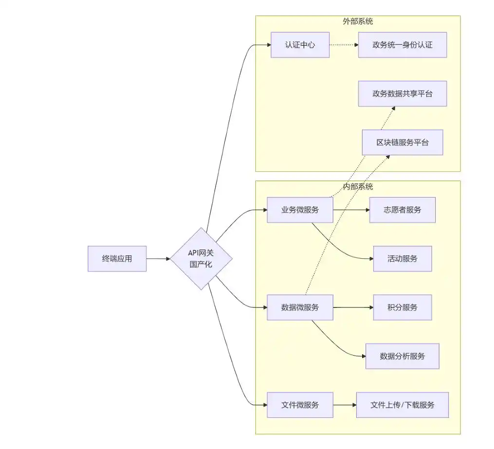 银川市志愿者服务平台,做作为承载50余万志愿者、200余个组织的民生工程,其技术架构的安全性直接关系到社会治理的稳定性。原有的基于国外技术栈的系统如同“数字飞地”,及存在数据跨境流动的风险,又面临技术断供的威胁。此次东方商易的系统研发和技术改造,正是通过麒麟操作系统、达梦数据库、东方通中间件等国产技术矩阵的重构,构建起从管理到应用的安全防护体系。这样的技术重构不是简单的技术替换,而是将数据主权牢牢掌握在自己手中,为城市资源服务事业筑起一道坚不可摧的数字长城。在信创云环境下实现平滑迁移,通过微服务架构,解耦应用与基础设施,利用容器化技术实现弹性伸缩和数据库迁移中SOL语言的转换、存储过程重构等关键技术。特别是针对几十万甚至上百万级资源服务记录的迁移校验,东方商易创新采用区块链存证技术确保数据完整性。